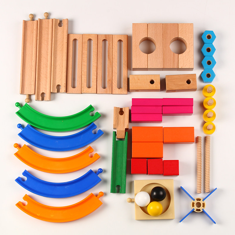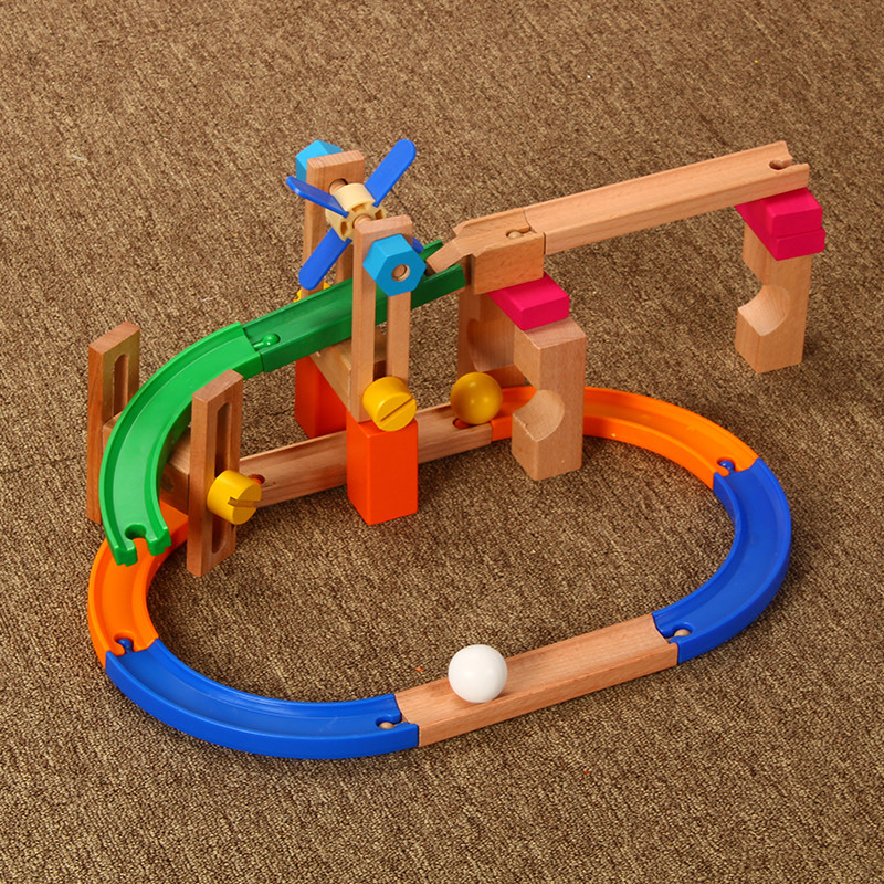 Children's Puzzle Rail Roller Toy Set Wooden Ball Block 3 - 6 - 8 years old boy intellectually assembled