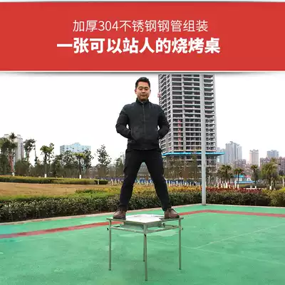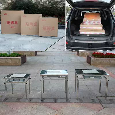Outdoor folding square stainless steel barbecue table Household commercial barbecue charcoal barbecue grill table Courtyard