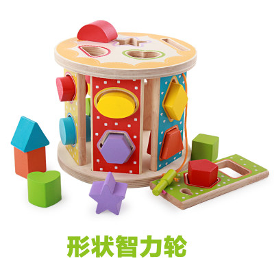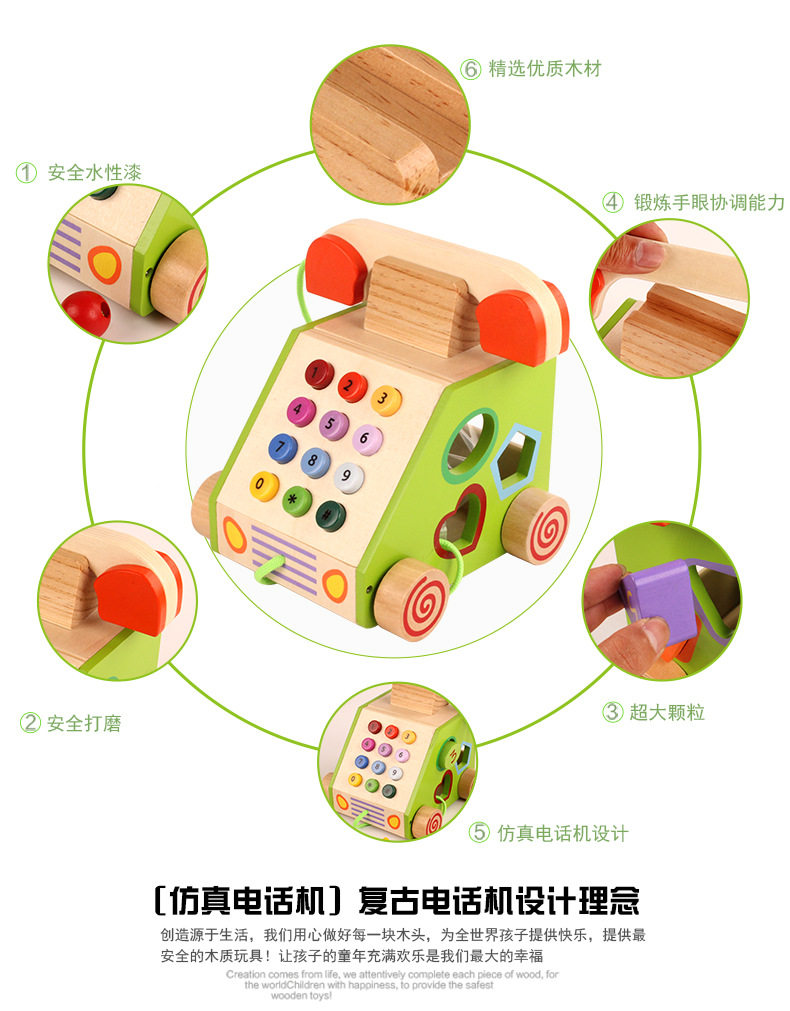 Wooden shape intelligent box wheel assembly toy simulation of home telephone children cognitive splicing block