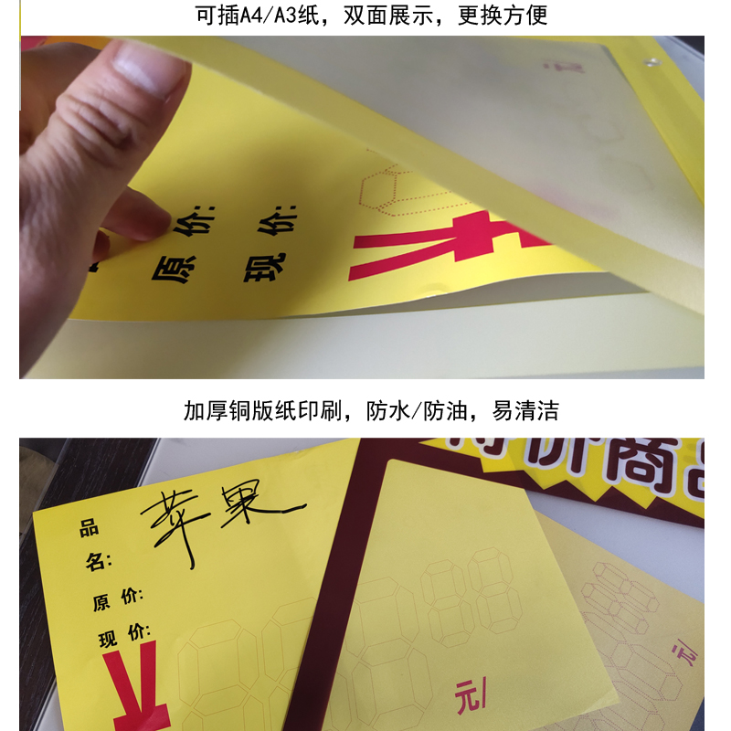 Supermarket POP A3A4 paper insert poster protective film copperplate yellow paper insert with word insert blank format yellow paper