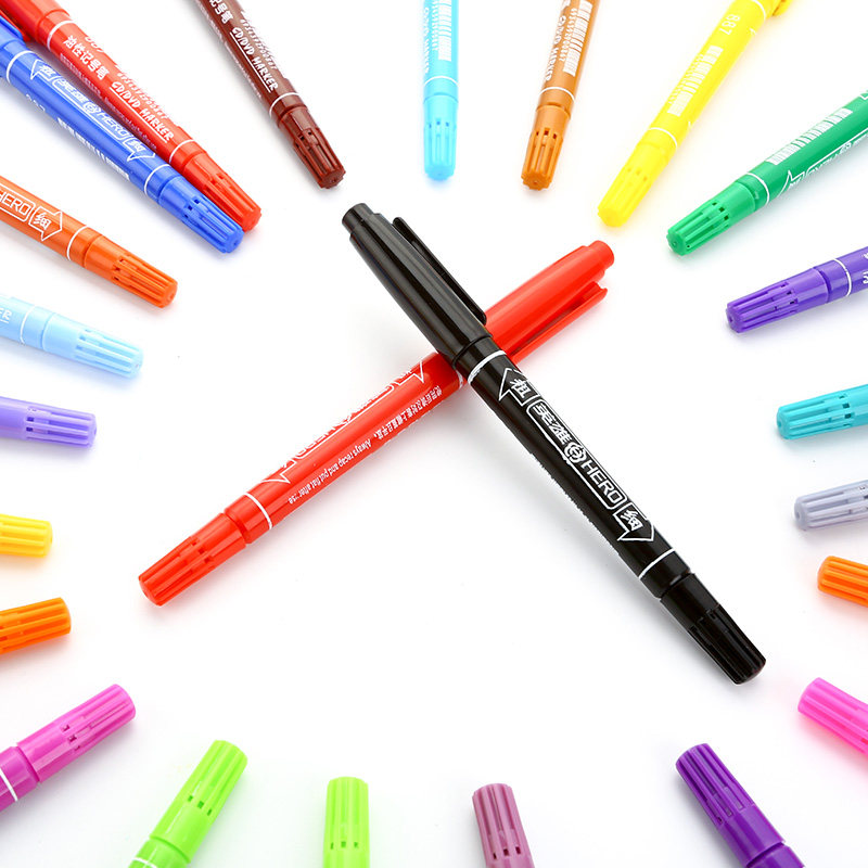 Hero 887 small double-headed marker pen Children's drawing hook pen wholesale 12-color 24-color set CD-rom pen
