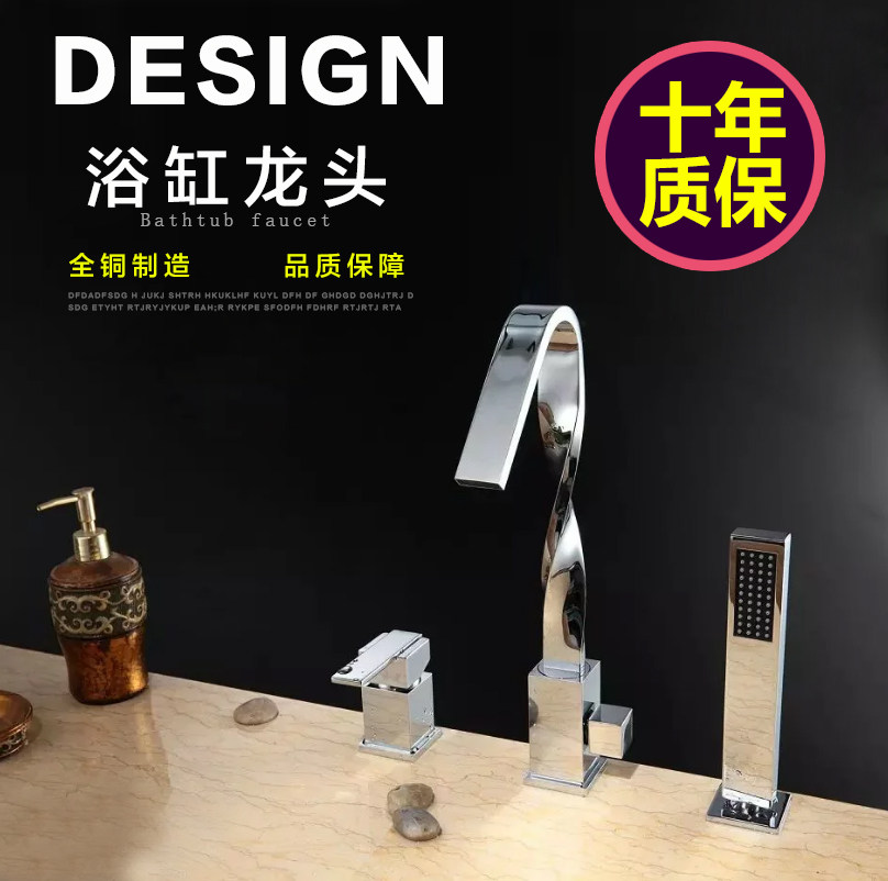 Cashitu all copper cylinder side bathtub faucet embedded hot and cold extension two-piece faucet cylinder side shower set