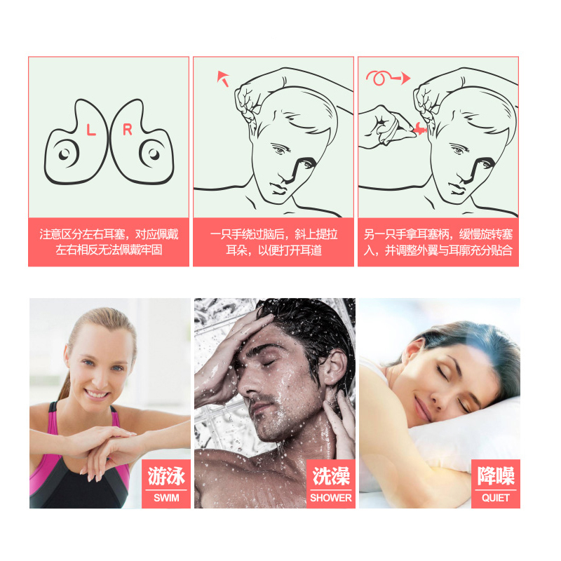Swimming earplugs waterproof silicone to prevent ear water Adult bath men and women swimming earplugs send nose clip