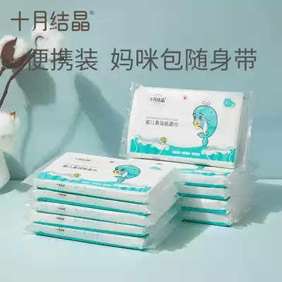 10 draw * 15 packs of October Crystal wet wipes baby hand wipes baby products mini portable packaging small bag wet wipes
