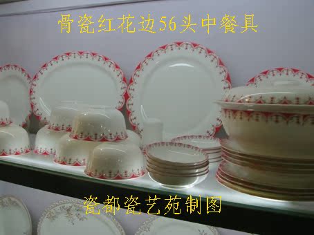 Jingdezhen ceramic sketching large red flower side pattern 56 pieces of cutlery high-end bone porcelain thin and light and beautiful