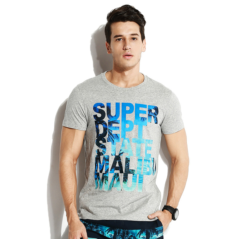Pure Cotton Round Collar T-shirt Short Sleeve Men Beach Seaside Holiday Sport Loose Letter Printed Fashion Jersey Half Sleeve