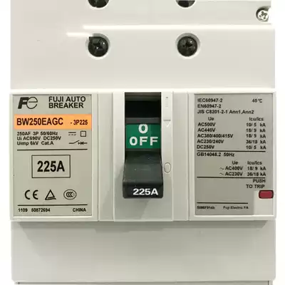 Original Japanese FUJI Molded Case Circuit Breaker FEBW250EAGC 3P 225A Air Switch