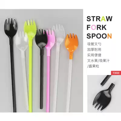 Disposable Fruit Tea fork 25cm extended fruit tea dual straw with fork handle fork spoon long spoon fruit fork