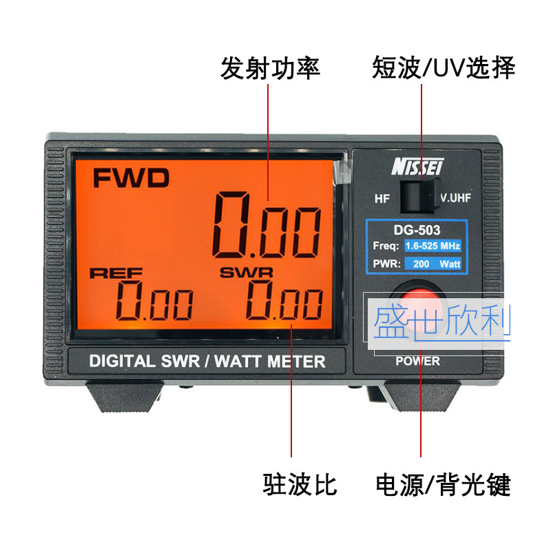 Nasson DG-503 large screen digital standing wave meter 1.6-60MHz 125-525MHz 200W power