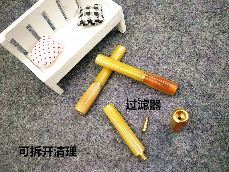 Horn cigarette holder filter portable washable circulating environmental protection smoking filter copper filter gift