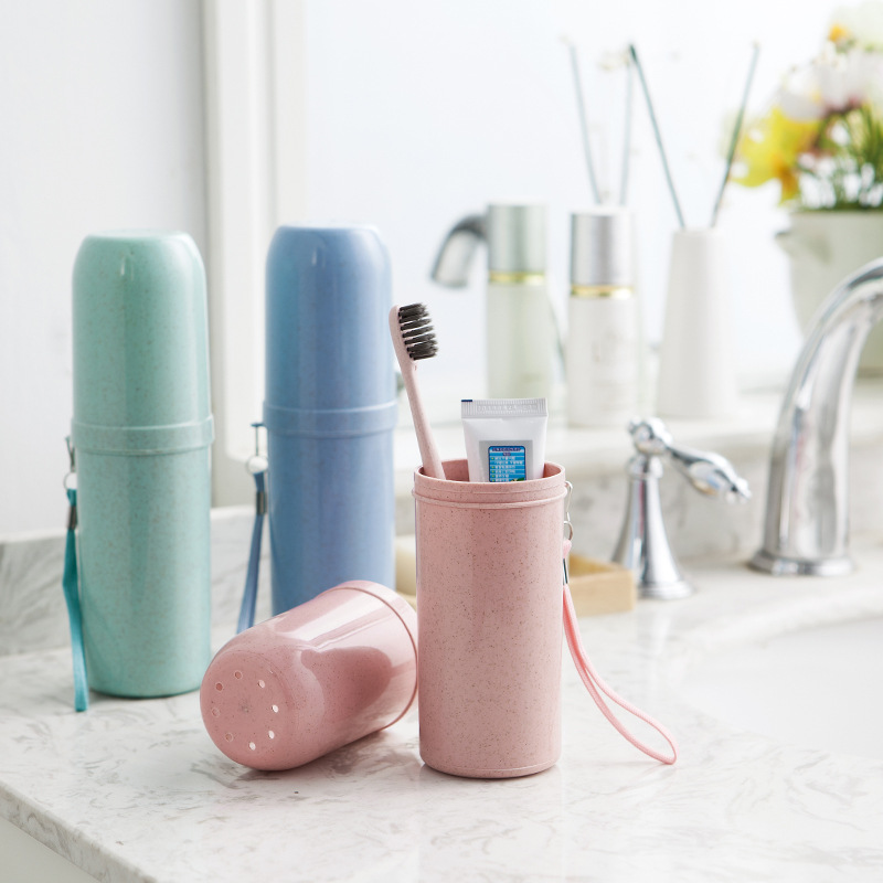 Travel toothbrush box portable set wheat straw with lid protective sleeve simple adult mouthwash cup travel toilet wash cup