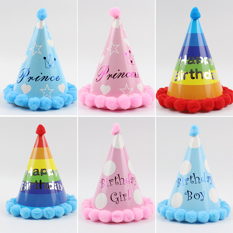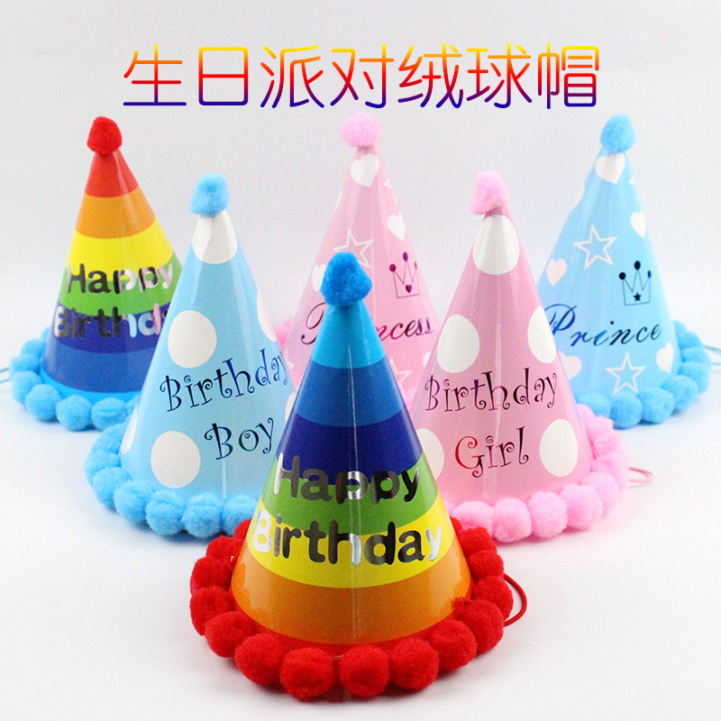 Mengmeng Da Cartoon birthday hat Children's birthday pompon Triangle hat Pointed hat Cake matching birthday hat batch hair