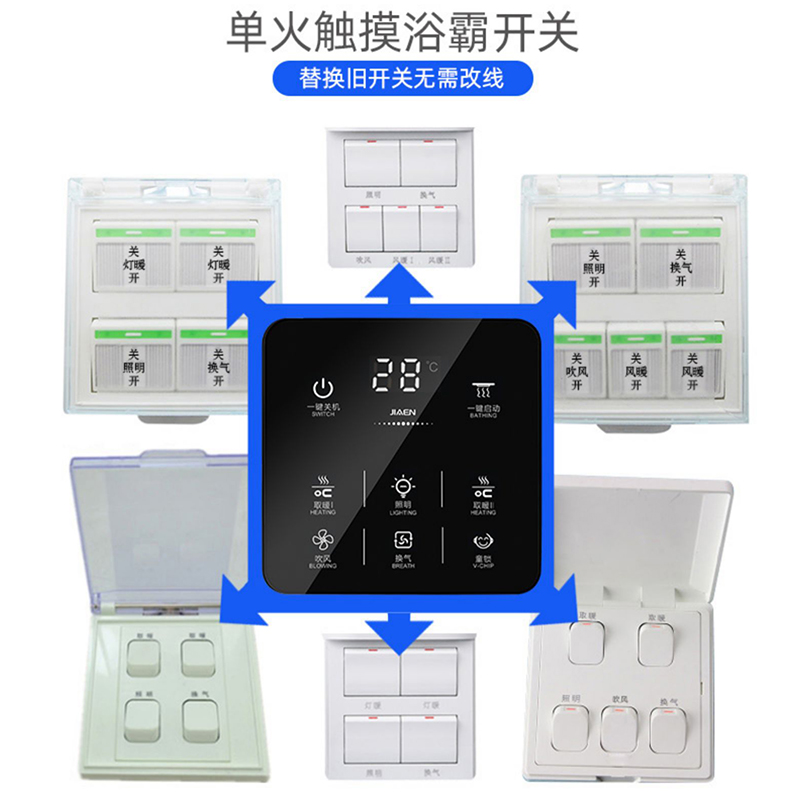 Ji'en smart bath bully switch black touch screen 6-wire heater five-in-one bathroom heater waterproof splash 5 open