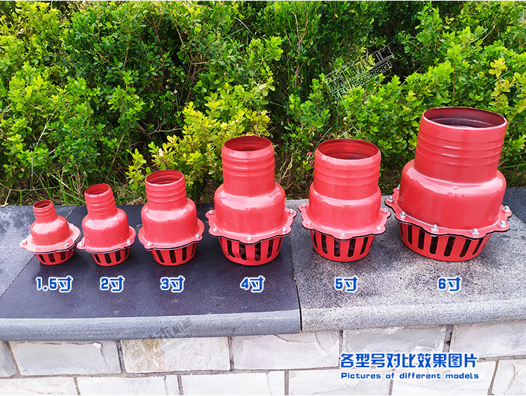 1.5 inch (3.7 cm) pitcher head 2 inches (5 cm) pitcher head 2.5 in (6.2 cm) pitcher head 3 inch (7.5 cm) pitcher head 4 in (10 cm) pitcher head 5 inches (12.5 cm) pitcher head 6 in (15 cm) pitcher head