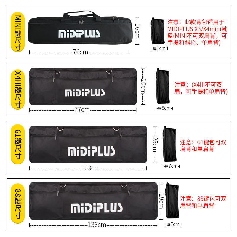 MIDIPLUS originally featured 49 61 88 midi keyboard electronic piano with one shoulder hands carrying shoulder backpack