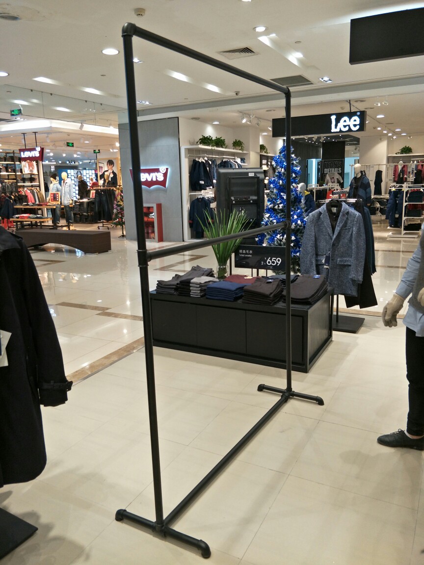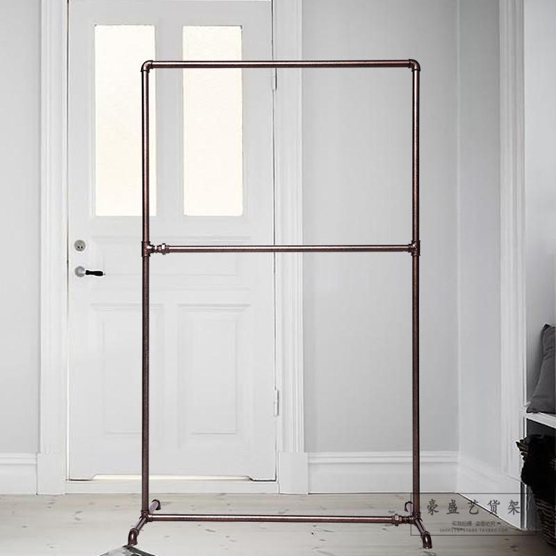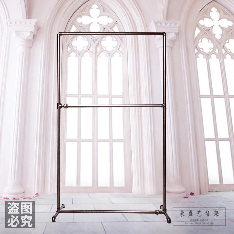 Thickened water pipe hanger Clothing display rack Double-layer Wrought iron floor rack Vintage gantry clothing store display rack