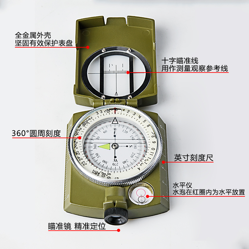 Marine brigade outdoor multi-function compass High-precision professional North Compass Geological compass can measure slope angle