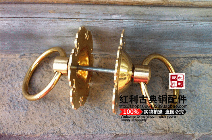Chinese style furnishing door cymbals Ruyi pull ring imitation ancient pure copper glass wooden door handle inside and outside double face to loading door ring-Taobao