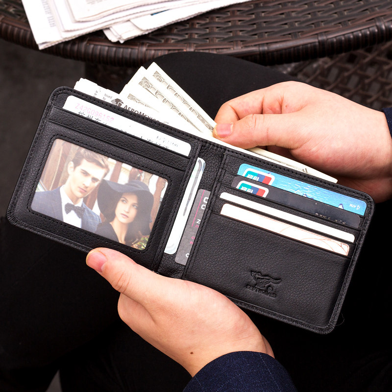 Seven wolves men's wallet short genuine leather cowhide gift box wallet horizontal men's short wallet