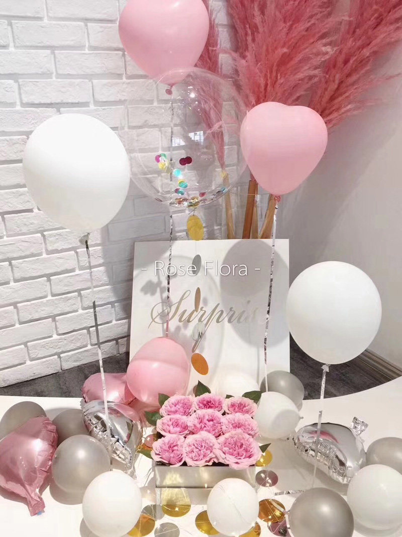 White pink white box plus 15 powder series Balloon Pink Box Plus 15 Pink Balloon Box Balloons All are semi-finished products need to assemble balloons on their own and need to buy helium Another helium requires feather Please