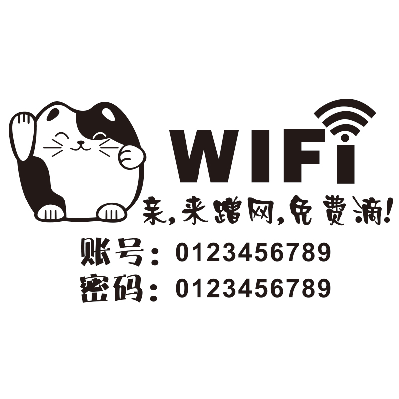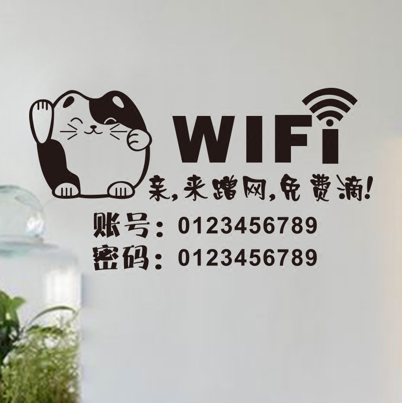 Property Cat Dining Hall Beauty Hairdressing Medecine Shop Wall Rub Wireless Network WIFI Account Number Password Wall Stickers