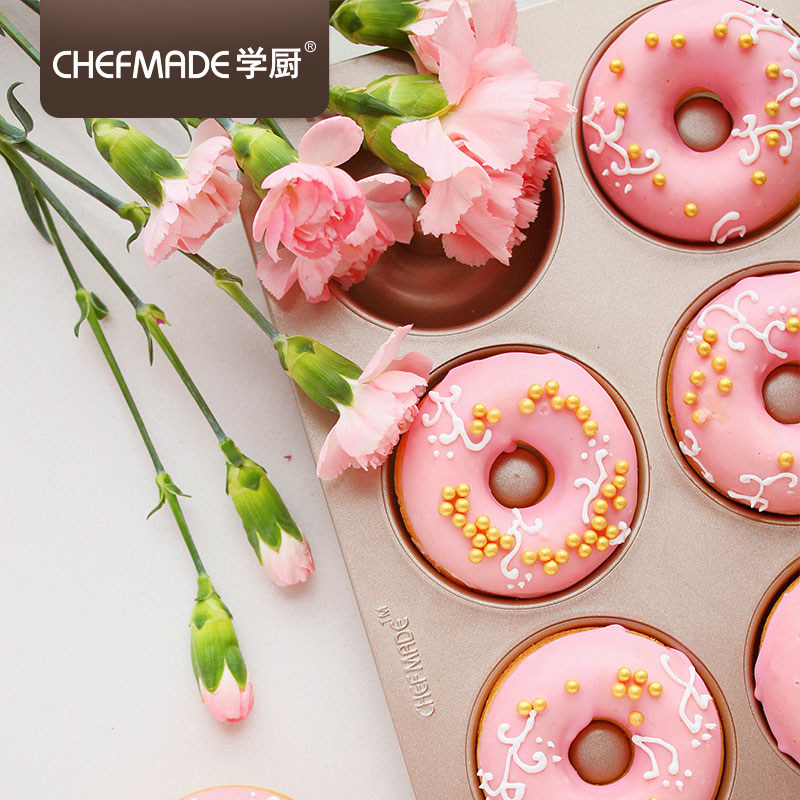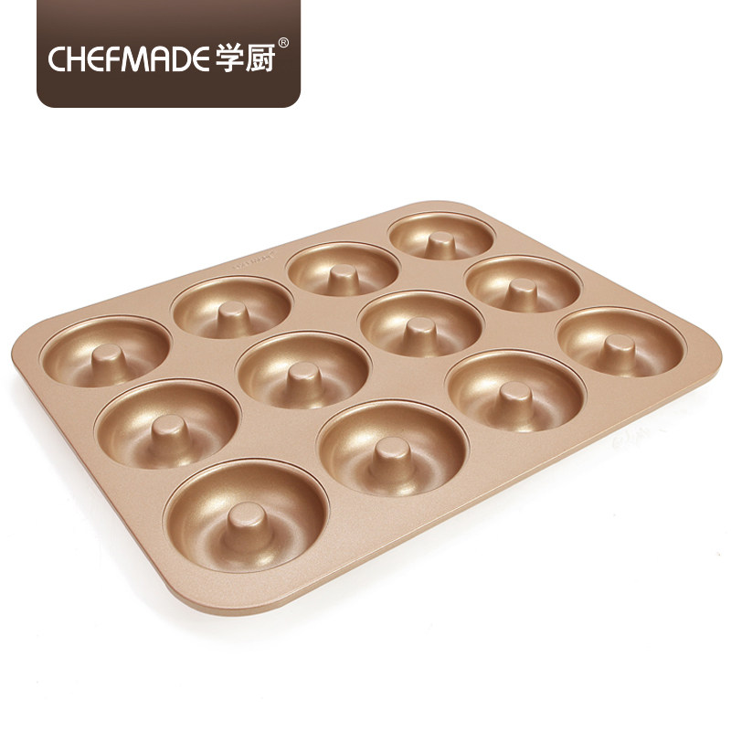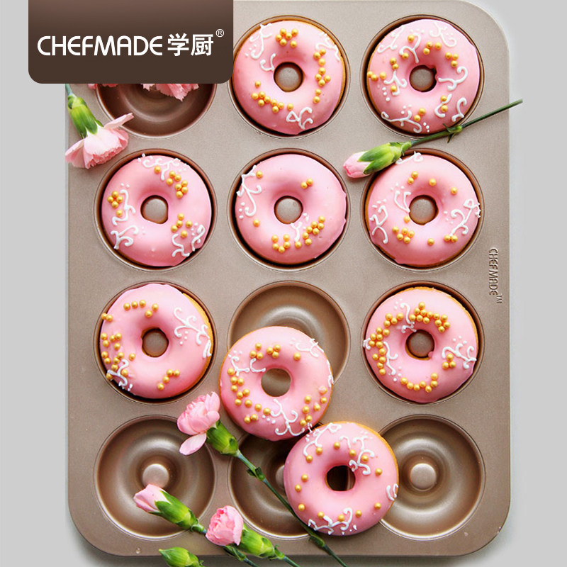 School Cook 12 Tandem Donuts Mold Baking Cake Round Hollow Bread Cookies Home Nonstick Baking Pan Oven