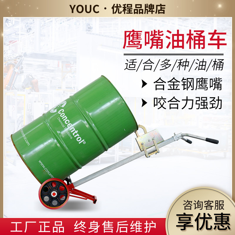U-Journey 450kg biting oil drum truck thick eagle mouth trolley iron drum plastic barrel drum drum trailer