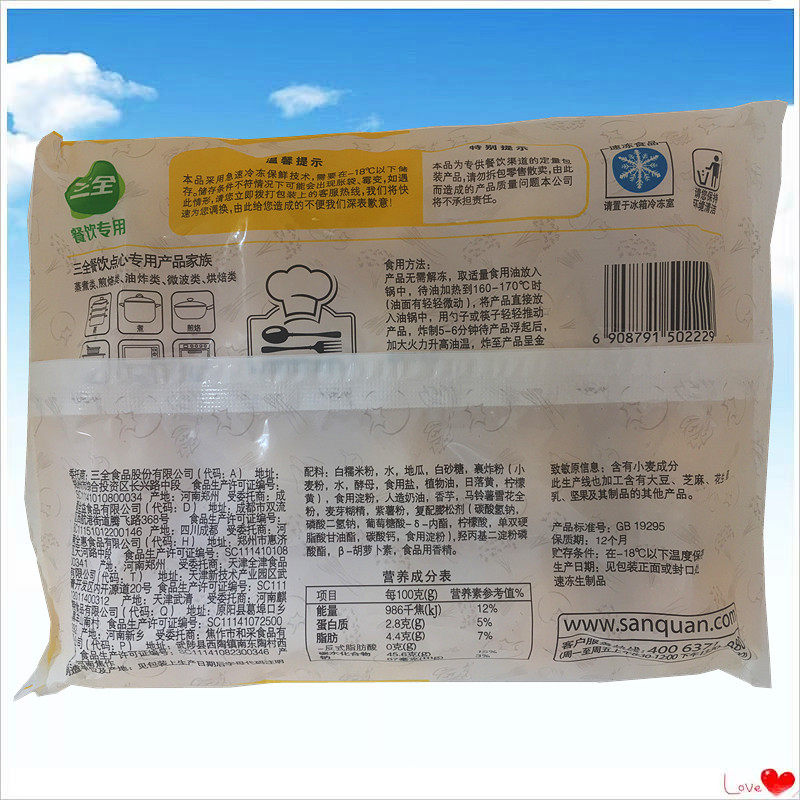 Sanquan fragrant taro sweet potato balls 400g1 pack 20 grains deep-fried chicken steak hamburger shop banquet snacks semi-finished products