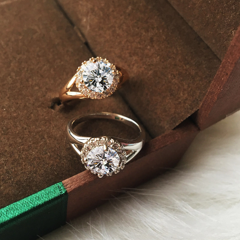 Minimalist streamlined luxury style Fashion Temperament Wedding Ring Courting Wedding Bride 1 Carat Emulation Diamond Ring Ornament Woman