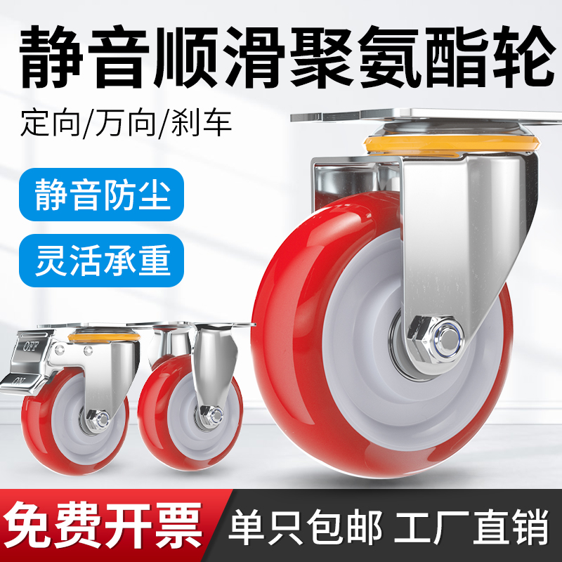 Universal wheel heavy-duty 3-inch polyurethane silent caster trolley board wheel wheel trolley pulley with brake 5 reels