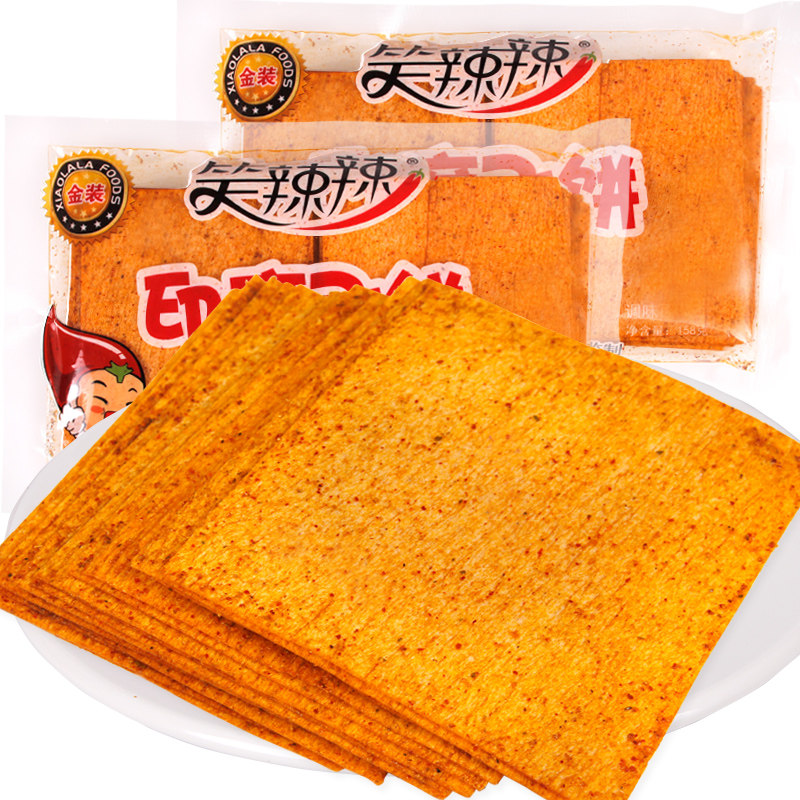 Laugh spicy spicy Indian flying cake spicy strips dried spicy slices 80 post-nostalgic snacks Hand-torn spicy slices 102g*5 bags