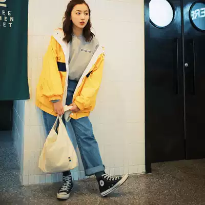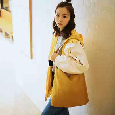 Ruo Suliang original self-made ins large-capacity female shoulder canvas bag literary Korean version of Risen patch bag