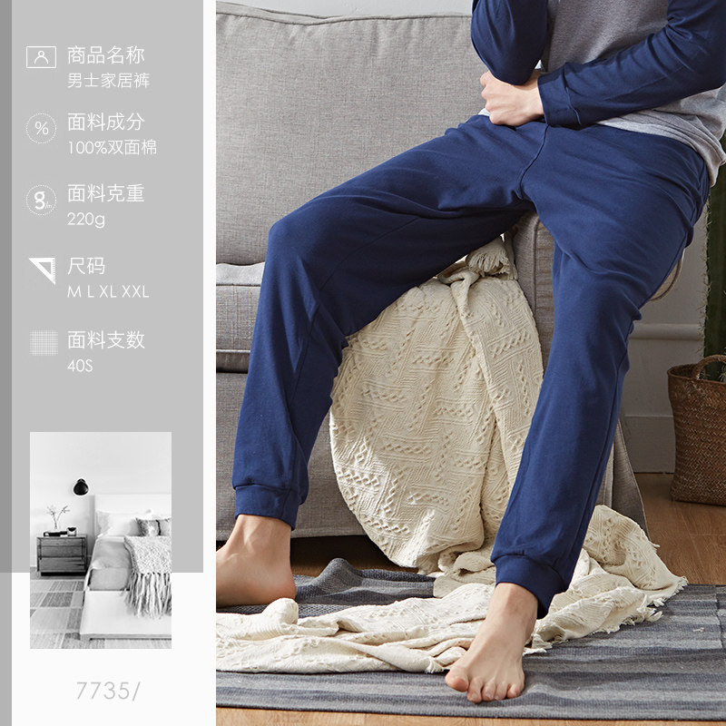 2-piece cotton pajamas men's spring and autumn loose home pants Medium thick cotton summer casual sports pants Autumn and winter home pants