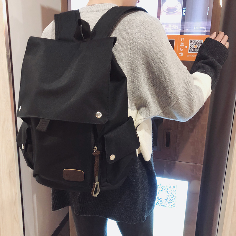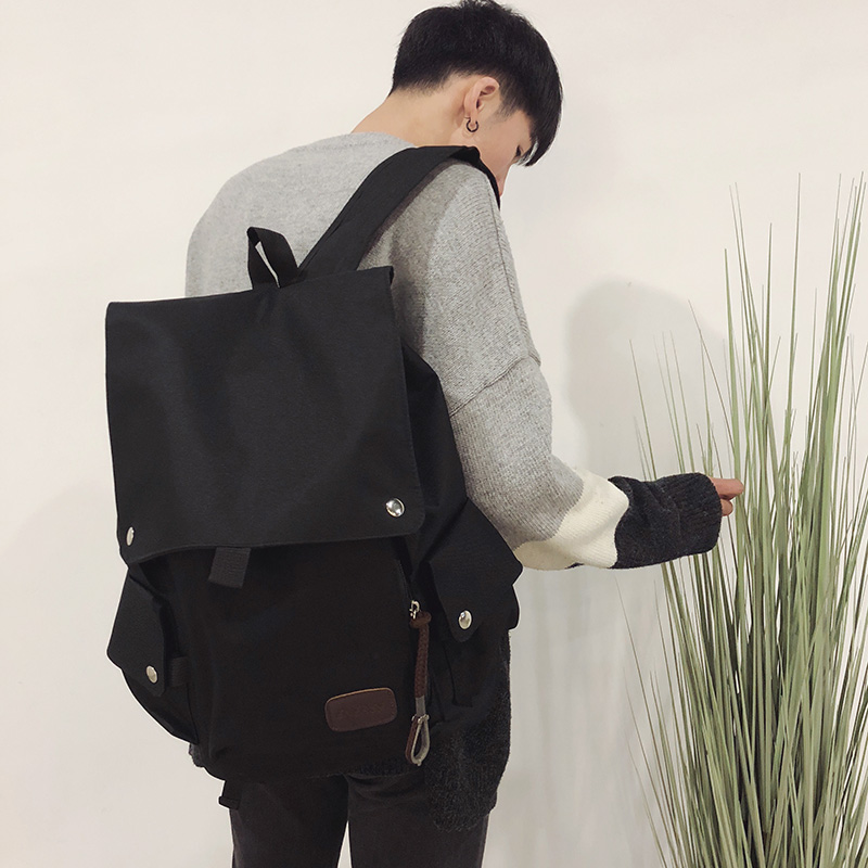 Bookbag male 4 - 7 grade students simply campus shoulder bag canvas Korean edition trend casual lid - cover bag