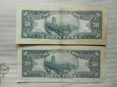 Republic of China Banknotes Central Bank gold round coupon 50 yuan Wu Shiyuan single and double letters 1 pair