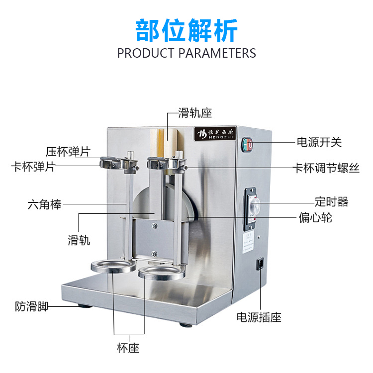 Commercial milk tea double head rocking machine thickened stainless steel milk tea equipment timed rocking wine maker automatic Syracuse rocking cup machine