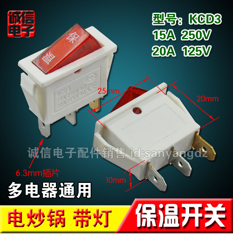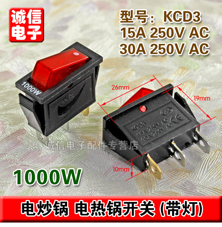 Electric frying pan switch electric boiler switch boat type with lamp 500800 1000 2200-3500W multiple power