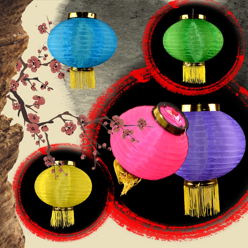 Colorful silk cloth round lanterns ornaments Japan and South Korea outdoor decoration custom advertising printing red yellow blue green pink purple lantern string cage