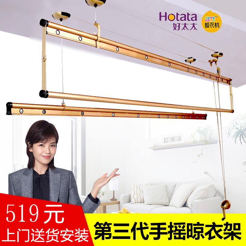 Good lady drying rack hand shake cool clothes rack balcony two-pole drying rack hand shake and thicker pack installed