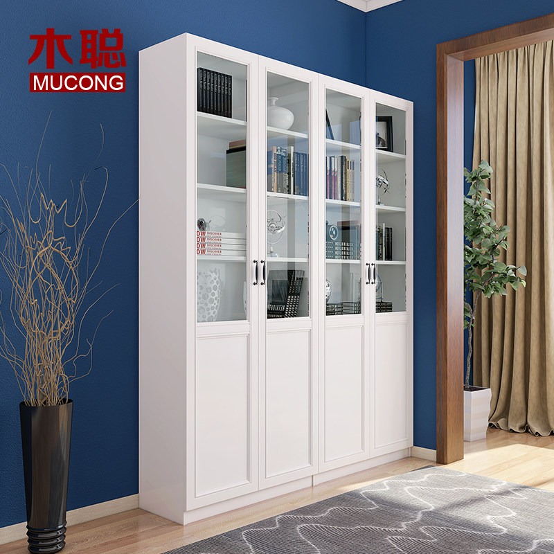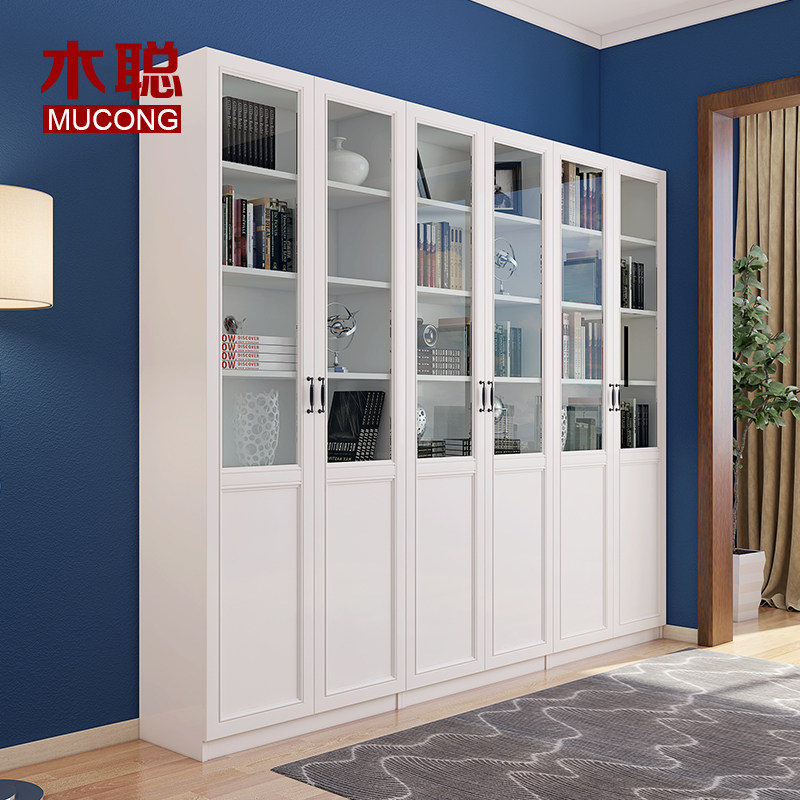 Mucong free combination bookcase bookcase modern simple glass door storage cabinet with drawer study bookcase storage cabinet