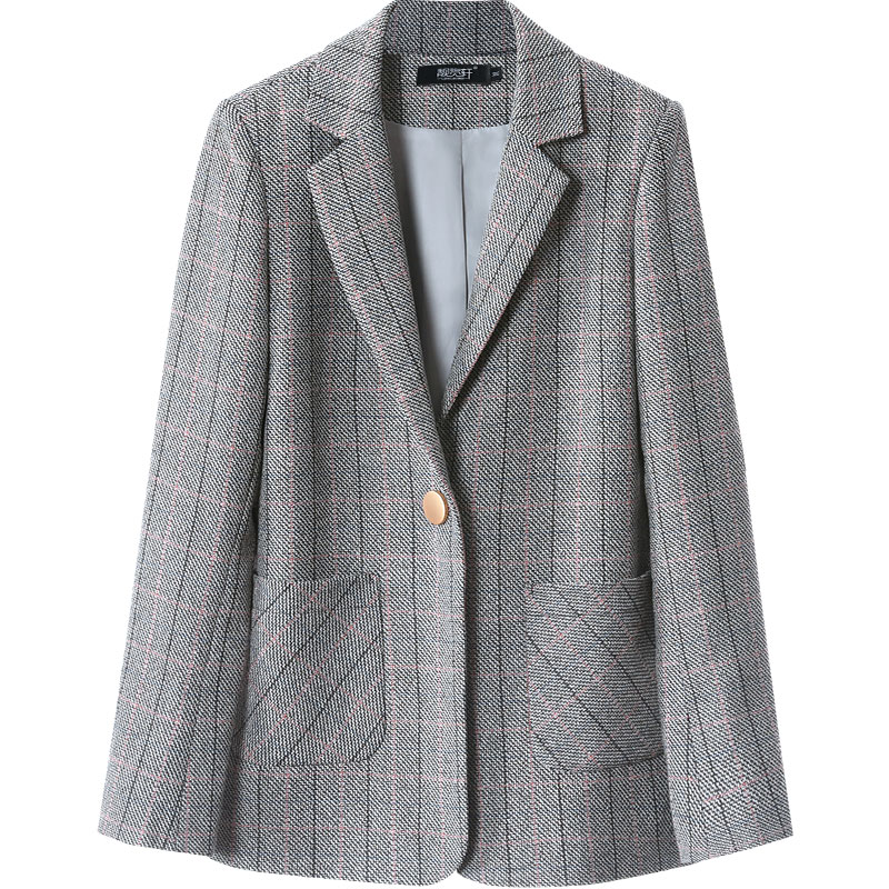 2022 Summer new sashimi small suit jacket casual blouse Korean version lady with medium long version professional plaid west suit