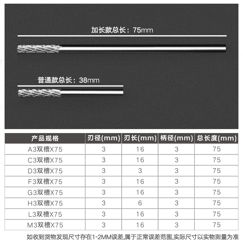 Carbide rotary file tungsten steel alloy milling cutter grinding head metal woodworking carving small electric grinding head 3*75mm