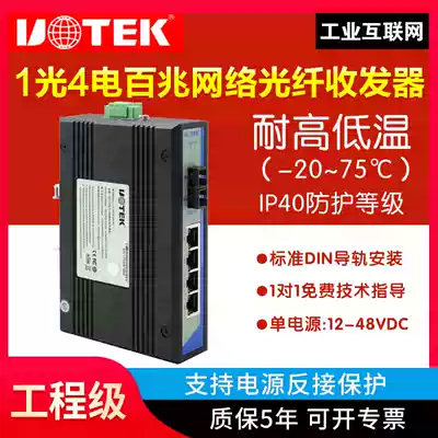One optical and four electrical 100M fiber optic transceiver Industrial Ethernet switch Network interface to fiber Industrial grade 100M network switch Rail type wide voltage Yutai UT-2574SM