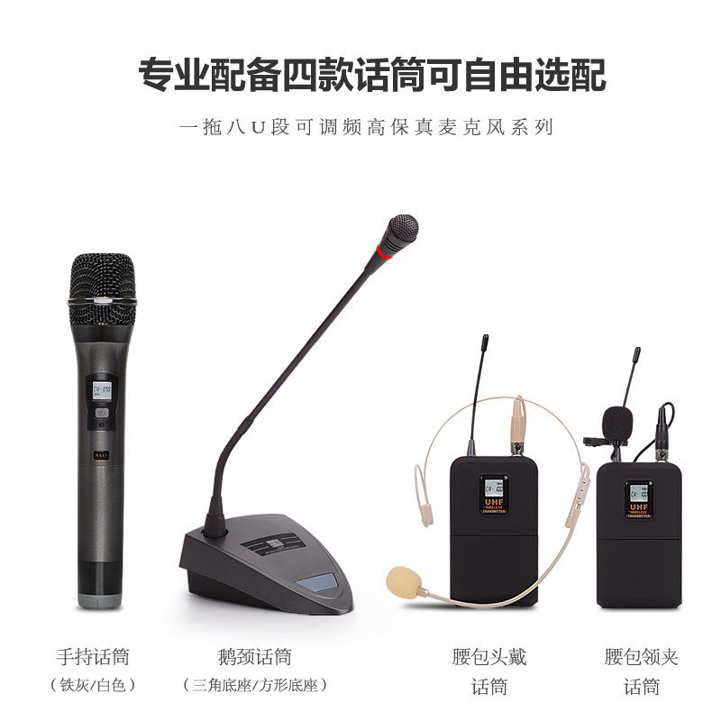 One for eight black handheld suits One for eight white handheld suits One for eight collar clip suits One for eight headwear suits One for eight triangle conference suits One for eight square conference suits