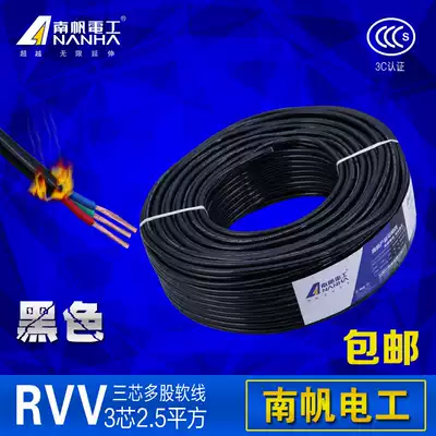Nanfan wire and cable household black three-core sheath cable soft rvvvv2 5 Square 3 core national standard copper core 100 m