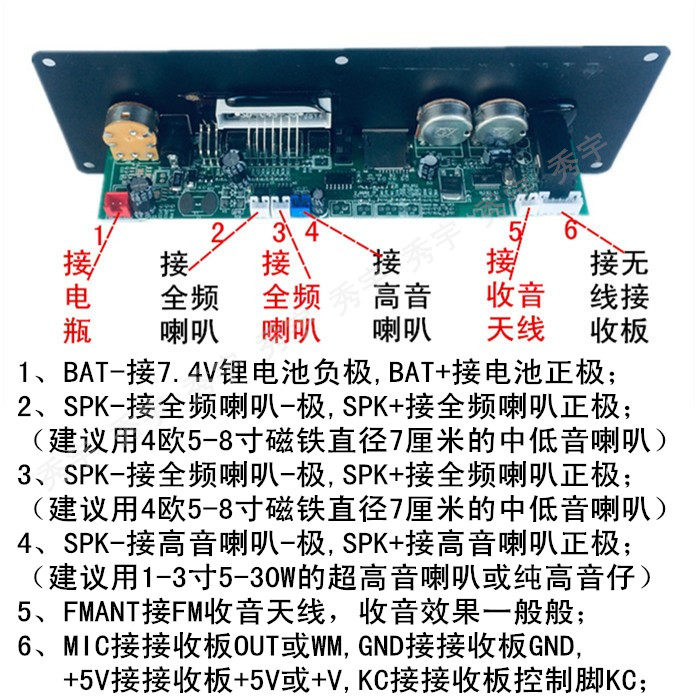 JL009A square dance speaker motherboard 9V charging 7 4V Lithium electric selling machine audio amplifier Bluetooth MP3 decoding