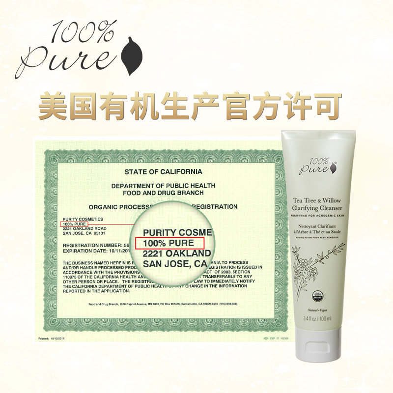 100%Pure tea tree white willow cleaning face lotion surface whey muscle to oil net pox moisturizing deep cleaning 100ml