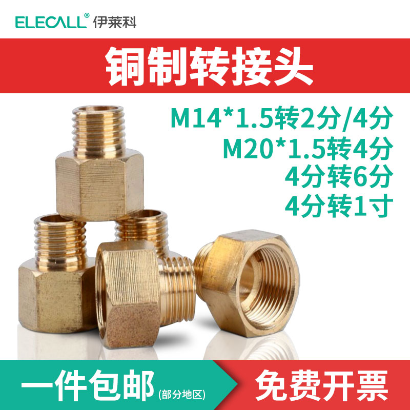 Pressure meter adapter water meter conversion joint M14 * 1 5 copper joint 3 minutes to 4 turn 2 water splitting tube union