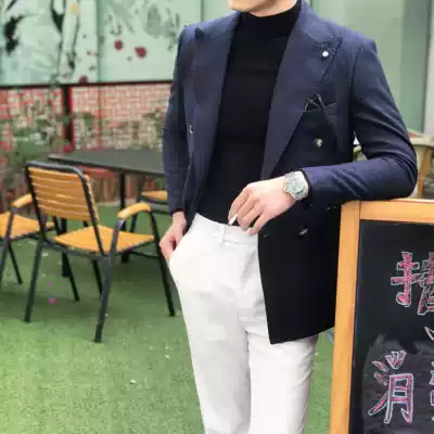 Mr. Lusan British style men's double-breasted suit Korean version of slim business formal stripes single suit male Yuppie