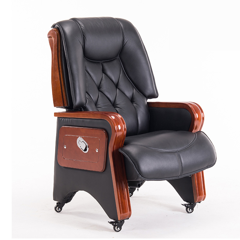Computer chair office chair Bull Leather Genuine Leather Boss Chair Can Lounge Swivel Four Feet Solid Wood Home